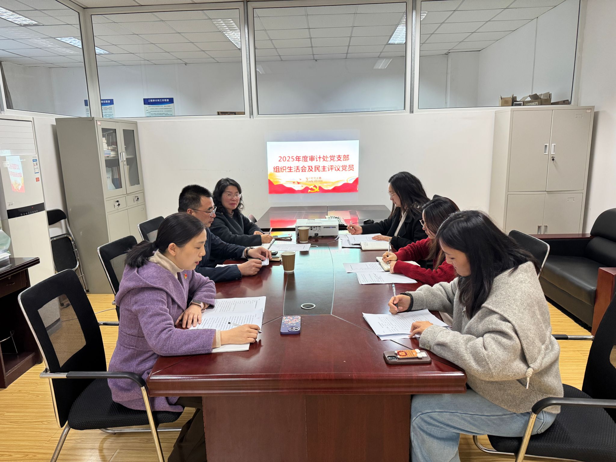 3月19日,审计处党支部在弘毅楼408室召开了2025年度组织生活会暨民主评议党员大会。会议严格按照上级党委要求,在充分准备的基础上,聚焦“贯彻党的创新理论、党性修养、联系服务群众、发挥先锋模范作用、改进工作作风”五个方面,深入开展批评与自我批评。党委副书记、校长李方裕同志以普通党员身份参加会议,机关党委书记刘馨到会指导,支部全体党员参加会议。